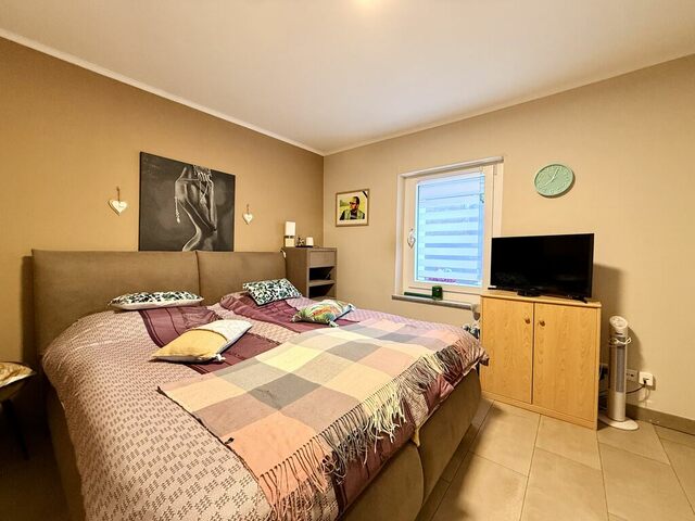 Entrée, living, cuisine, 1 chambre à coucher, WC, accès à la terrasse, garage